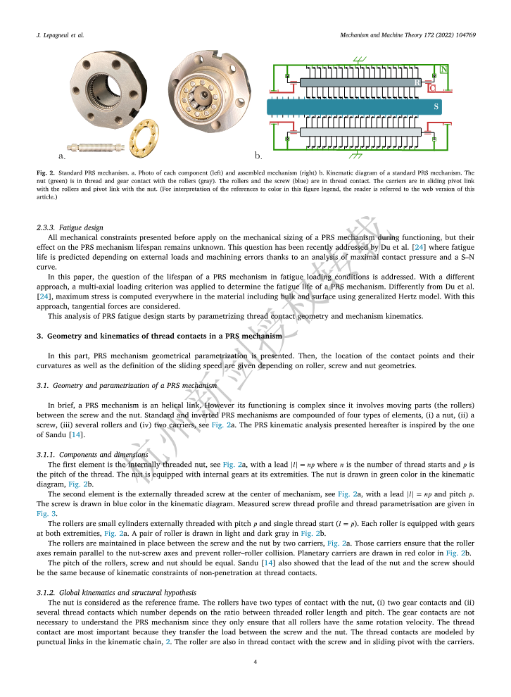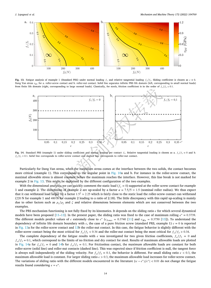 Fatigue lifespan of a planetary roller-screw mechanism(22年行星滾柱絲杠機構的疲勞壽命)